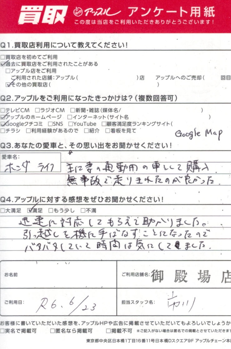 ライフ買取M・Y様 車名:ホンダ ライフ