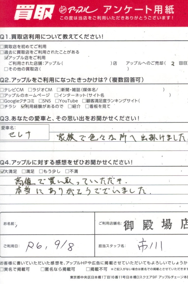 高根で買い取っていただき本当にありがとうございました。