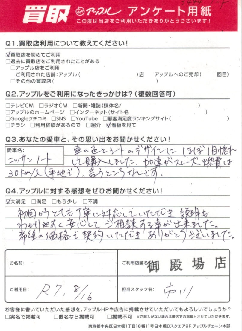 ノート買取T・T様 車名:日産 ノートオーラ