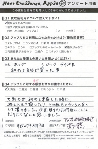 シビック買取ご成約 K様