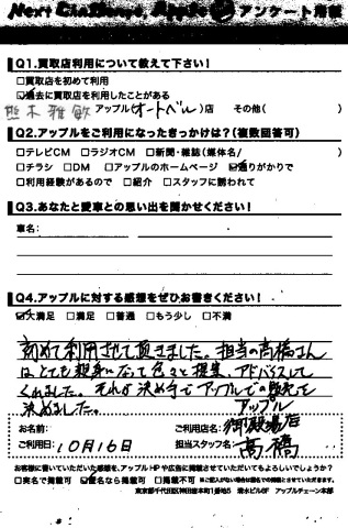 お車のご相談・ 査定だけでもOK! カンタン 入力 30秒 アップルがブランド買取始めました! お電話でも受付中! 受付時間10:00 ~ 18:00 0120-81-3776 お車のご相談・ 査定だけでもOK! カンタン 入力 30秒 アップルがブランド買取始めました! お電話でも受付中! 受付時間10:00 ~ 18:00 0120-81-3776 アップルがブランド買取始めました! お電話でも受付中! 受付時間10:00 ~ 18:00 0120-81-3776 店舗情報 在庫車 スタッフ紹介 ブログ お客様の声 キャンペーン 無料査定 click お客様の声 ご記入日: 2015/10/16 アテンザ買取ご成約 T.A様 ☆頂きましたアップルへのご感想・・大満足初めて利用させて頂きました。担当の高橋さんはとても親身になって色々と提案、アドバイスしてくれました。それが決め手でアップルでの販売を決めました。 前へ 次へ お客様の声一覧を見る