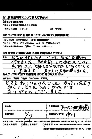 とても感じの良い人でした。思っていたより多くてとても嬉しかったです。ありがとうございました。