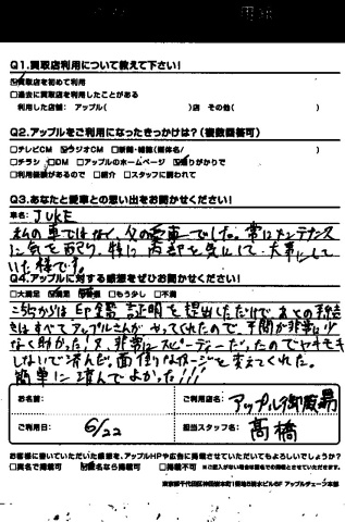 こちらからは印鑑証明を提出しただけで、あとの手続きはすべてアップルさんがやってくれたので、手間が非常に少なく助かった!又、非常にスピーディーだったのでヤキモキしないで済んだ。面倒なイメージを変えてくれた。簡単に済んでよかった!!!