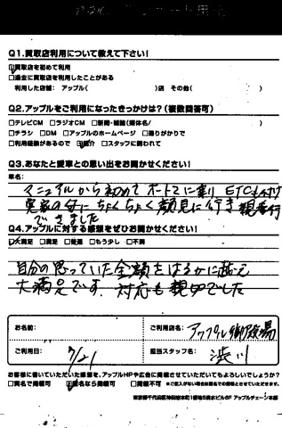 自分の思っていた金額をはるかに超え大満足です。対応も親切でした。