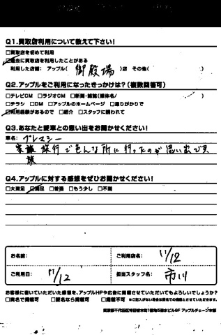 お車のご相談・ 査定だけでもOK! カンタン 入力 30秒 アップルがブランド買取始めました! お電話でも受付中! 受付時間10:00 ~ 18:00 0120-81-3776 お車のご相談・ 査定だけでもOK! カンタン 入力 30秒 アップルがブランド買取始めました! お電話でも受付中! 受付時間10:00 ~ 18:00 0120-81-3776 アップルがブランド買取始めました! お電話でも受付中! 受付時間10:00 ~ 18:00 0120-81-3776 店舗情報 在庫車 スタッフ紹介 ブログ お客様の声 キャンペーン 無料査定 click お客様の声 ご記入日: 2016/11/12 プレマシー買取 S.U様 ☆あなたと愛車の思い出をお聞かせください!家族旅行で色んな所に行ったのが思い出です☆アップルに頂きました感想・・満足担当・・市川 前へ 次へ お客様の声一覧を見る