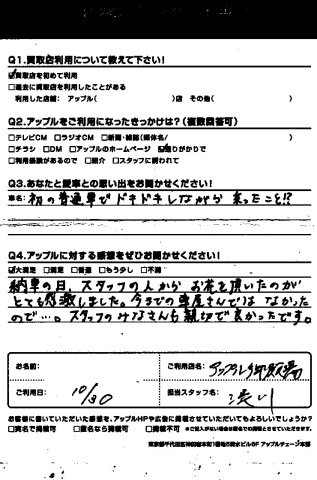納車の日、スタッフの人からお花を頂いたのがとても感激しました。今までの車屋さんではなかったので・・・。スタッフのみなさんも親切で良かったです。
