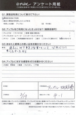 お車のご相談・ 査定だけでもOK! カンタン 入力 30秒 アップルがブランド買取始めました! お電話でも受付中! 受付時間10:00 ~ 18:00 0120-81-3776 お車のご相談・ 査定だけでもOK! カンタン 入力 30秒 アップルがブランド買取始めました! お電話でも受付中! 受付時間10:00 ~ 18:00 0120-81-3776 アップルがブランド買取始めました! お電話でも受付中! 受付時間10:00 ~ 18:00 0120-81-3776 店舗情報 在庫車 スタッフ紹介 ブログ お客様の声 キャンペーン 無料査定 click お客様の声 ご記入日: 2017/02/19 フィットHV買取 K.T様 ・あなたと愛車との思い出をお聞かせください過去にMT車を3台乗っていて、10年ぶりに乗りたかったから・アップルに頂きました感想・・満足担当 市川 前へ 次へ お客様の声一覧を見る