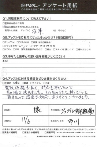 お車のご相談・ 査定だけでもOK! カンタン 入力 30秒 アップルがブランド買取始めました! お電話でも受付中! 受付時間10:00 ~ 18:00 0120-81-3776 お車のご相談・ 査定だけでもOK! カンタン 入力 30秒 アップルがブランド買取始めました! お電話でも受付中! 受付時間10:00 ~ 18:00 0120-81-3776 アップルがブランド買取始めました! お電話でも受付中! 受付時間10:00 ~ 18:00 0120-81-3776 店舗情報 在庫車 スタッフ紹介 ブログ お客様の声 キャンペーン 無料査定 click お客様の声 ご記入日: 2017/11/06 ジムニー買取 F.A様 ・アップルに頂きました感想・・満足買取価格も良く、対応も早かったのでその場で決めました。その日のうちに持っていって頂けたので、迅速な対応ありがとうございました。担当 市川 前へ 次へ お客様の声一覧を見る