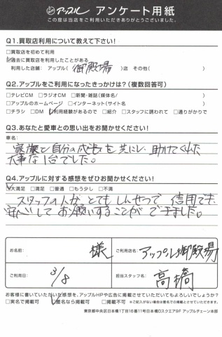 スタッフの人がとてもしんせつで、信用でき、安心してお願いするとこができました。