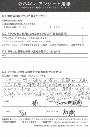 TELでの問い合わせの際の金額がはっきりしていた事と持参する物の説明が良かった。スムーズすぎてビックリするくらい。駅まで送りも助かった。大切な車が次の利用者にも活用されるのも知られてホッとした。