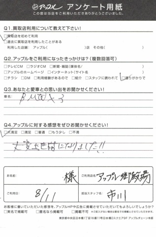 お車のご相談・ 査定だけでもOK! カンタン 入力 30秒 アップルがブランド買取始めました! お電話でも受付中! 受付時間10:00 ~ 18:00 0120-81-3776 お車のご相談・ 査定だけでもOK! カンタン 入力 30秒 アップルがブランド買取始めました! お電話でも受付中! 受付時間10:00 ~ 18:00 0120-81-3776 アップルがブランド買取始めました! お電話でも受付中! 受付時間10:00 ~ 18:00 0120-81-3776 店舗情報 在庫車 スタッフ紹介 ブログ お客様の声 キャンペーン 無料査定 click お客様の声 ご記入日: 2018/08/11 BMW・X3買取 Y.W様 ・アップルをご利用になったきっかけは?・・通りがかりで・アップルに対する感想をぜひお聞かせください・・大満足大変お世話になりました!!担当 市川 前へ 次へ お客様の声一覧を見る