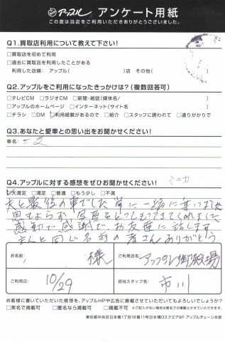 夫と最後の車でした。常に一緒にのってました。思いもよらず写真を撮ってもってきてくれました。感動で感謝でお友達に話します。