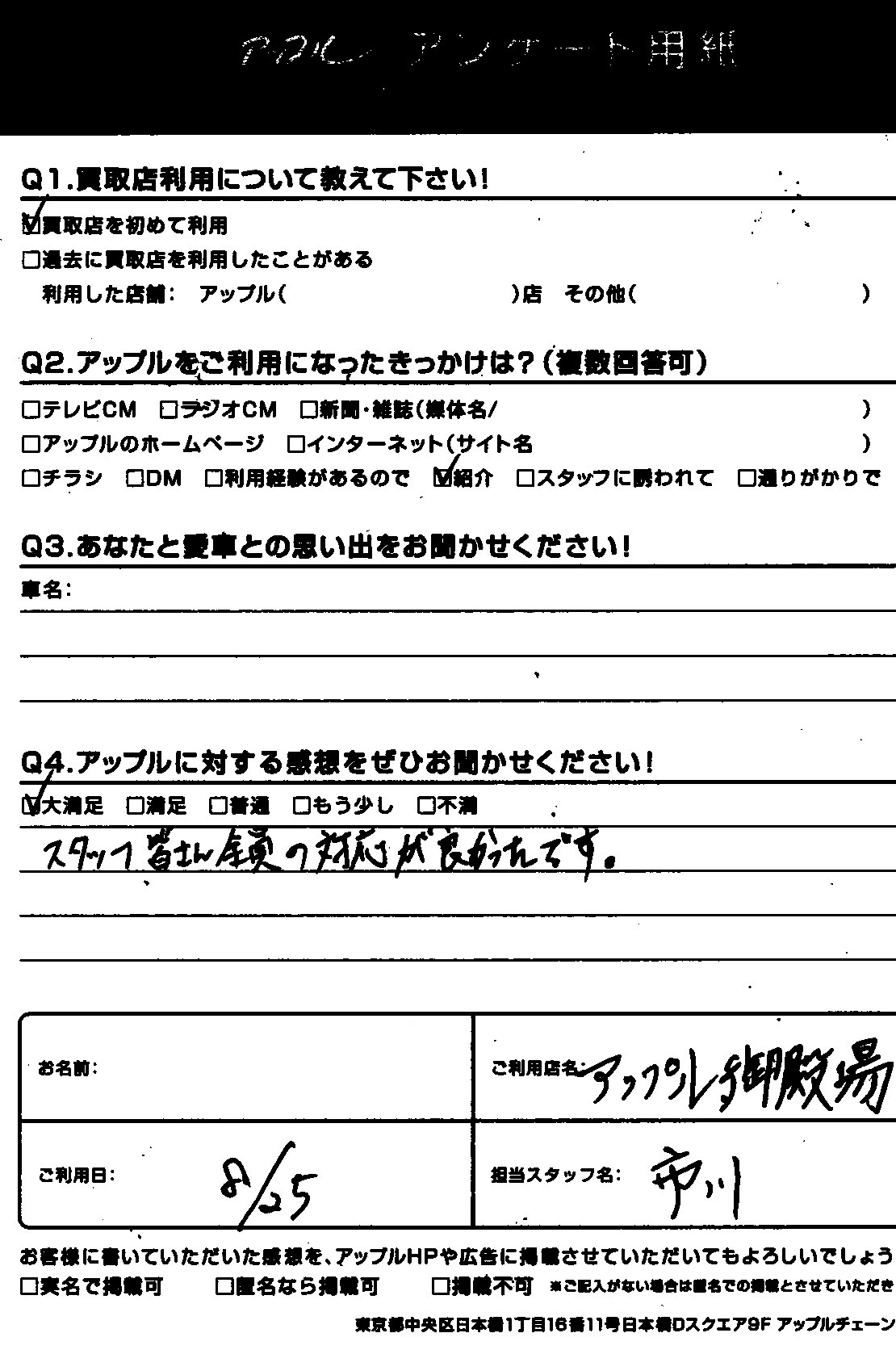 お車のご相談・ 査定だけでもOK! カンタン 入力 30秒 アップルがブランド買取始めました! お電話でも受付中! 受付時間10:00 ~ 18:00 0120-81-3776 お車のご相談・ 査定だけでもOK! カンタン 入力 30秒 アップルがブランド買取始めました! お電話でも受付中! 受付時間10:00 ~ 18:00 0120-81-3776 アップルがブランド買取始めました! お電話でも受付中! 受付時間10:00 ~ 18:00 0120-81-3776 店舗情報 在庫車 スタッフ紹介 ブログ お客様の声 キャンペーン 無料査定 click お客様の声 ご記入日: 2019/08/25 エリシオン買取 Y.T様 車名:ホンダ エリシオン ・アップルに対する感想をぜひお聞かせください・・大満足スタッフ皆さん全員の対応が良かったです。担当 市川 前へ 次へ お客様の声一覧を見る