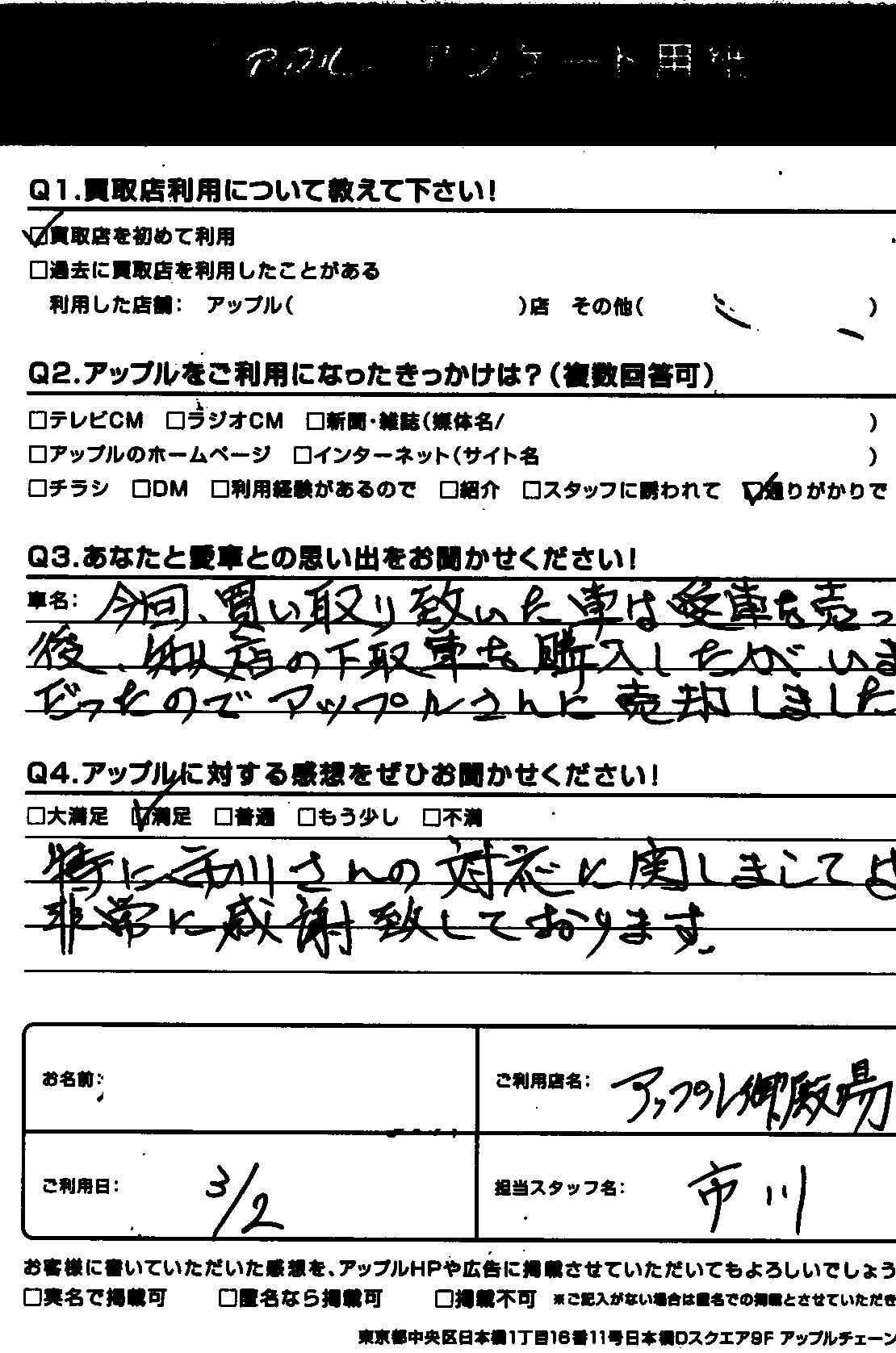 特に市川さんの対応に関しては非常に感謝しております。