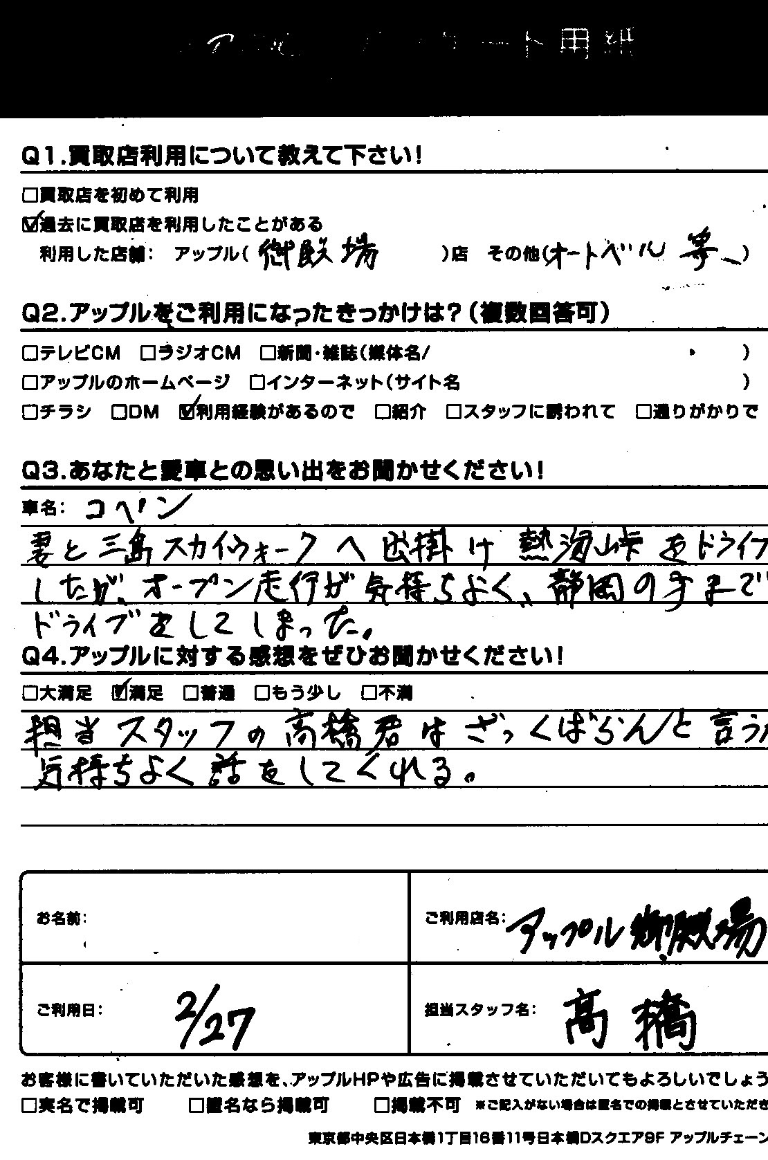 ・あなたと愛車との思い出をお聞かせ下さい。