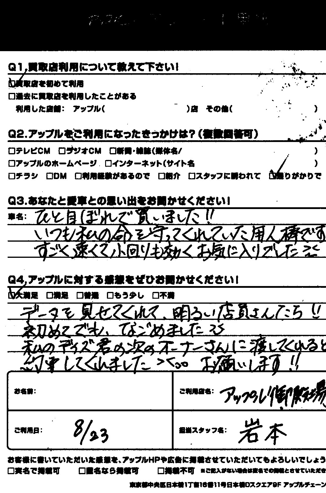 ・アップルに対する感想をぜひお聞かせください・・大満足