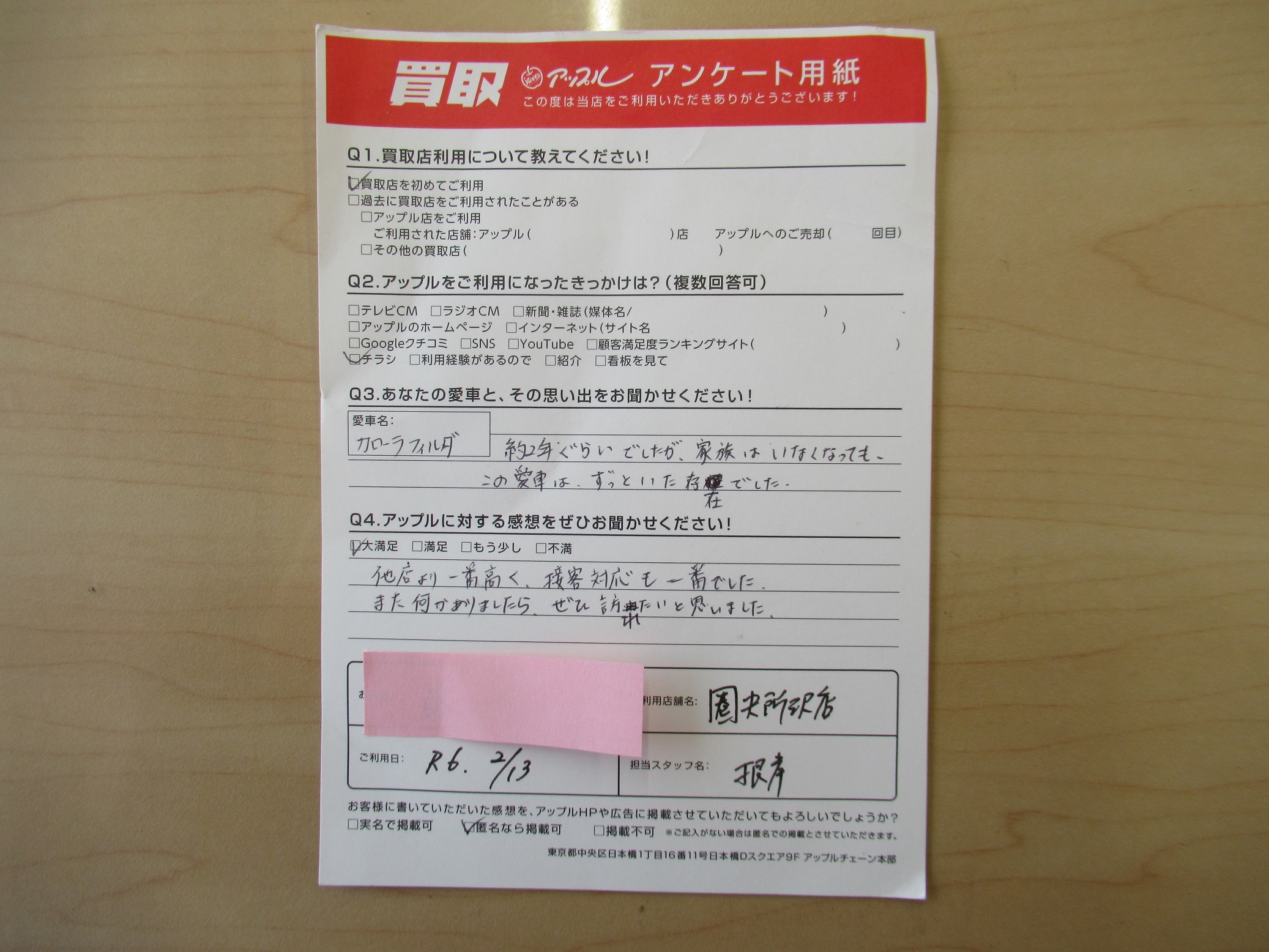 K・F様 車名:トヨタ カローラフィールダー フィールダー(カローラ)
