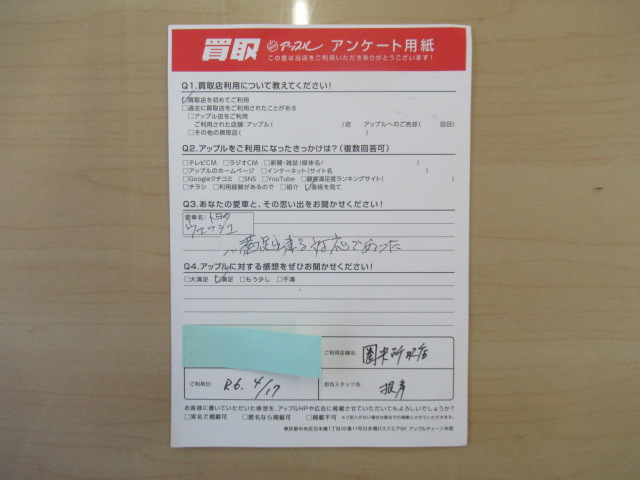 お車のご相談・ 査定だけでもOK! カンタン 入力 30秒 アップルがブランド買取始めました! お電話でも受付中! 受付時間10:00 ~ 19:00(火曜日は18:30までになります) 04-2933-3008 お車のご相談・ 査定だけでもOK! カンタン 入力 30秒 アップルがブランド買取始めました! お電話でも受付中! 受付時間10:00 ~ 19:00(火曜日は18:30までになります) 04-2933-3008 アップルがブランド買取始めました! お電話でも受付中! 受付時間10:00 ~ 19:00(火曜日は18:30までになります) 04-2933-3008 店舗情報 在庫車 スタッフ紹介 ブログ お客様の声 キャンペーン 無料査定 click お客様の声 ご記入日: 2024/04/07 R・K様 車名:トヨタ ウィッシュ 満足出来る対応であった。アップルの感想:満足 前へ 次へ お客様の声一覧を見る
