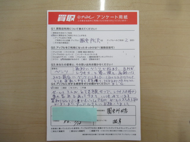 セールスさんがとても親切で、レクサスの時から車の写真を