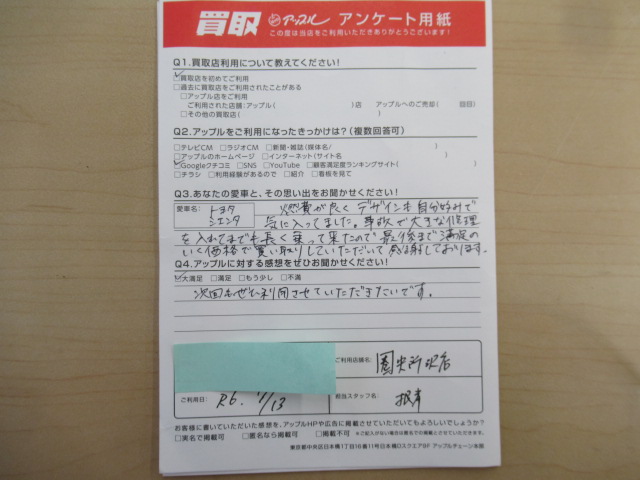 S様 車名:トヨタ シエンタ