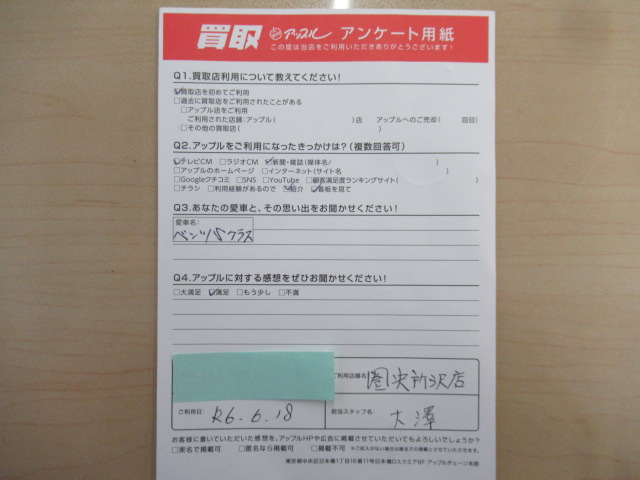 お車のご相談・ 査定だけでもOK! カンタン 入力 30秒 アップルがブランド買取始めました! お電話でも受付中! 受付時間10:00 ~ 19:00(火曜日は18:30までになります) 04-2933-3008 お車のご相談・ 査定だけでもOK! カンタン 入力 30秒 アップルがブランド買取始めました! お電話でも受付中! 受付時間10:00 ~ 19:00(火曜日は18:30までになります) 04-2933-3008 アップルがブランド買取始めました! お電話でも受付中! 受付時間10:00 ~ 19:00(火曜日は18:30までになります) 04-2933-3008 店舗情報 在庫車 スタッフ紹介 ブログ お客様の声 キャンペーン 無料査定 click お客様の声 ご記入日: 2024/06/21 M様 車名:メルセデス・ベンツ Sクラス アップルの感想:満足 前へ 次へ お客様の声一覧を見る