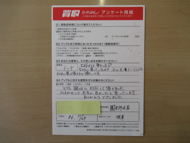 大好きな車でした。大切に乗っていたので、次のオーナーさんにも