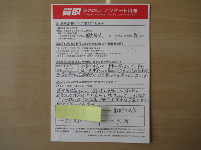 お世話になっております。今回も大満足なお取引でした。