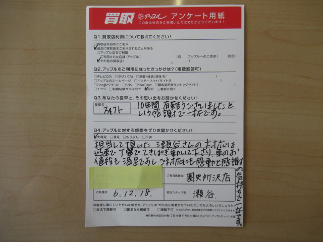 担当して頂いた瀬谷さんの対応は迅速で丁寧でてきぱき