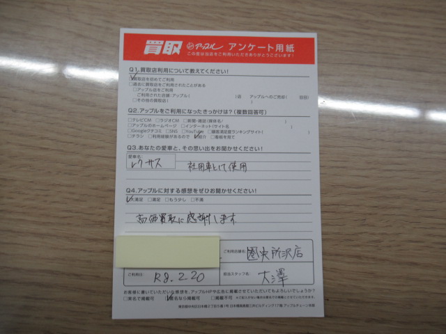 お車のご相談・ 査定だけでもOK! カンタン 入力 30秒 アップルがブランド買取始めました! お電話でも受付中! 受付時間10:00 ~ 19:00(火曜日は18:30までになります) 04-2933-3008 お車のご相談・ 査定だけでもOK! カンタン 入力 30秒 アップルがブランド買取始めました! お電話でも受付中! 受付時間10:00 ~ 19:00(火曜日は18:30までになります) 04-2933-3008 アップルがブランド買取始めました! お電話でも受付中! 受付時間10:00 ~ 19:00(火曜日は18:30までになります) 04-2933-3008 店舗情報 在庫車 スタッフ紹介 ブログ お客様の声 キャンペーン 無料査定 click お客様の声 ご記入日: 2026/02/20 匿名希望様 車名:レクサス 社用車として使用アップルの感想:大満足高価買取に感謝します。 前へ 次へ お客様の声一覧を見る