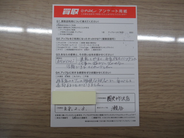 お車のご相談・ 査定だけでもOK! カンタン 入力 30秒 アップルがブランド買取始めました! お電話でも受付中! 受付時間10:00 ~ 19:00(火曜日は18:30までになります) 04-2933-3008 お車のご相談・ 査定だけでもOK! カンタン 入力 30秒 アップルがブランド買取始めました! お電話でも受付中! 受付時間10:00 ~ 19:00(火曜日は18:30までになります) 04-2933-3008 アップルがブランド買取始めました! お電話でも受付中! 受付時間10:00 ~ 19:00(火曜日は18:30までになります) 04-2933-3008 店舗情報 在庫車 スタッフ紹介 ブログ お客様の声 キャンペーン 無料査定 click お客様の声 ご記入日: 2026/02/03 匿名希望様 車名:BMW 運転しやすく、安定性もバツグンで仕事に遊びに欠かせない信頼できるマイカーでした。アップルの感想:満足担当者の方の明確な対応で安心して売却することができました。 前へ 次へ お客様の声一覧を見る