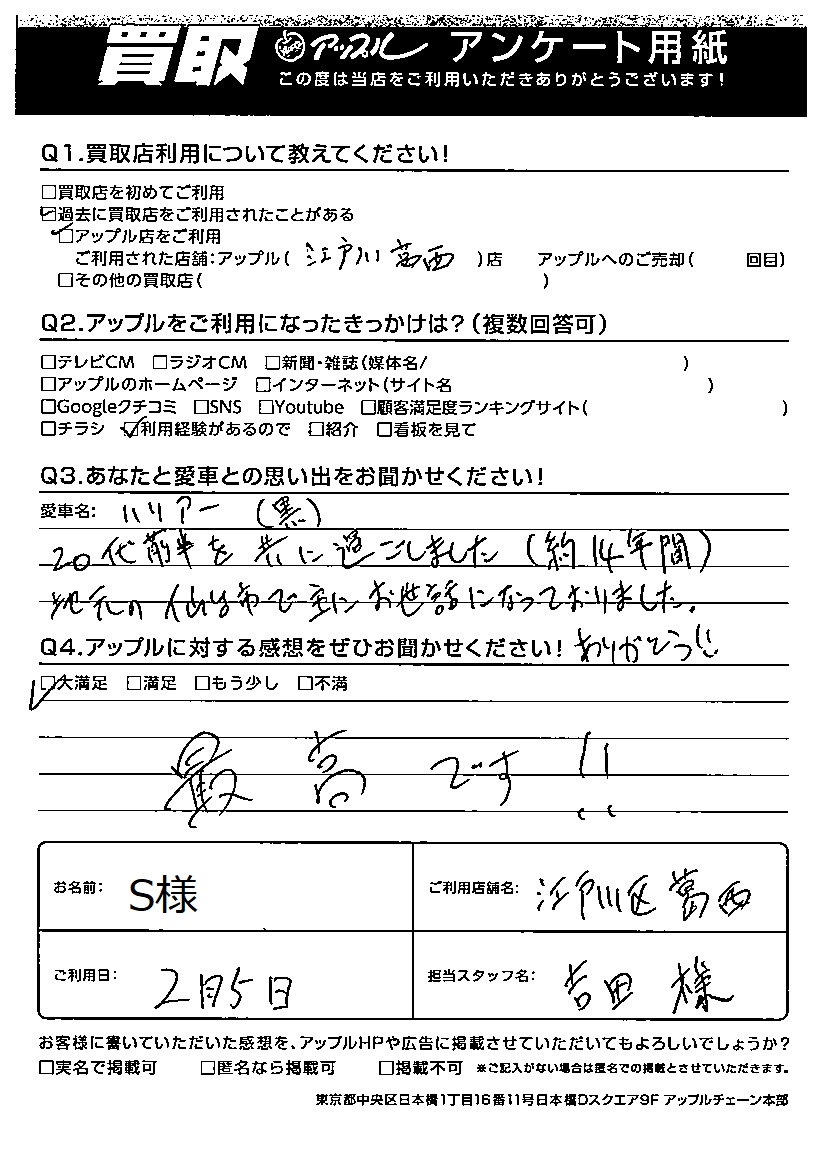 ご利用日:2022/2/5 S 様 江戸川葛西店ご利用経験あり