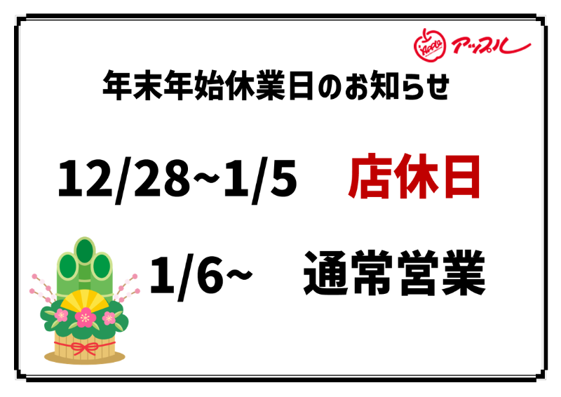 明日12/28~1/5日の間を年末年始休業とさせていただきます。