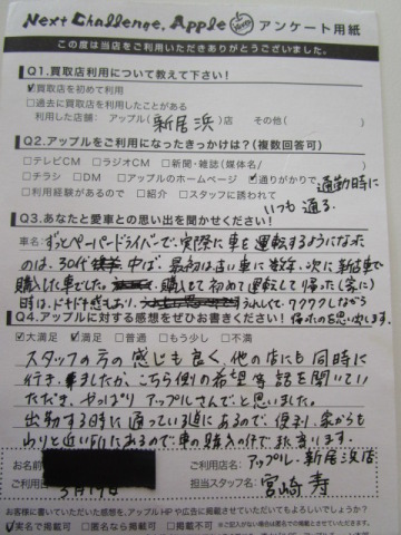 出勤する時に通っている道にあるので便利、家からも近い所にあるので車の購入の件でまたよります。