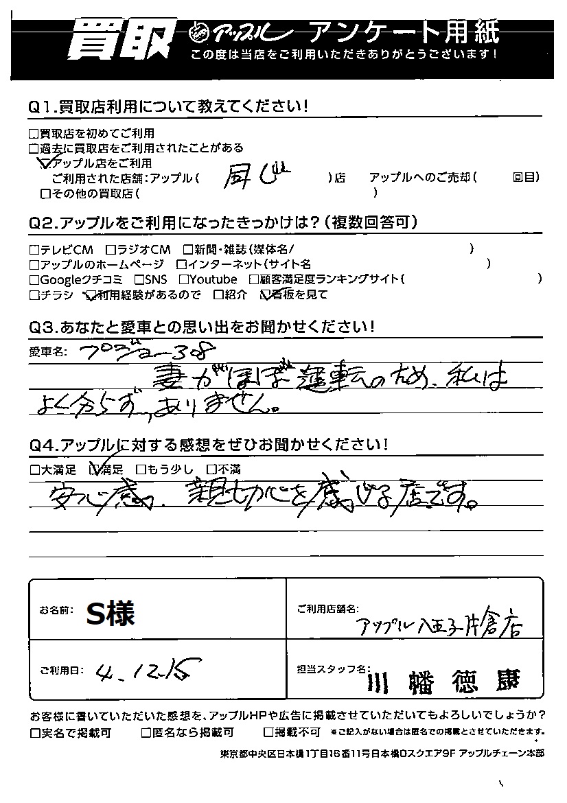 妻がほぼ運転ため、私はよく分からず、ありません。