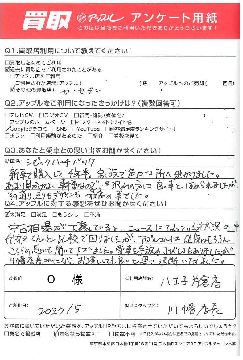 O 様 担当:川幡店長