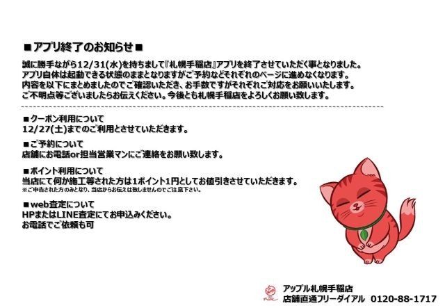 札幌手稲店というアプリをやっていたのはご存じでしょうか??