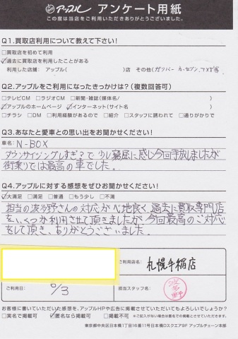 ご来店→即決と非常に清々しいお取引でした。新しいお車で遊びに来てください。また、お話しましょう。