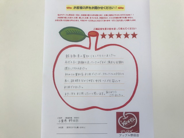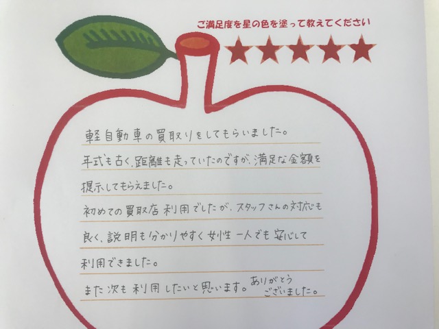 年式も古く、距離も走っていたのですが、満足な金額を提示してもらえました。