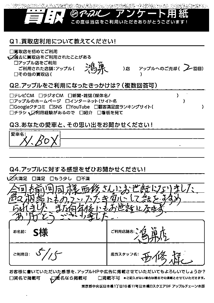 S様 車名:ホンダ N-BOX