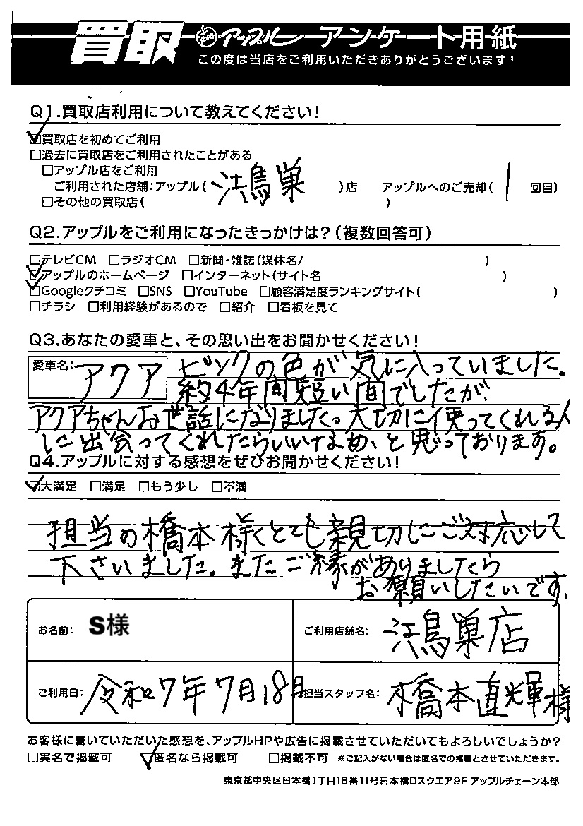 担当の橋本様 とても親切にご対応して下さいました。またご縁がありましたらお願いしたいです。