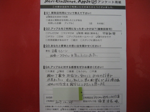 アップル石内バイパス店を選んでくださり、大変感謝しております。