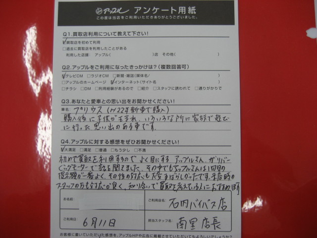 初めて買取を利用するのでよく目にするアップルさん、ガリバー、ビッグモーターで話を聞きました。その中でもアップルさんは1回目の提示額が一番よく、その後の対応も大変すばらしかったです。