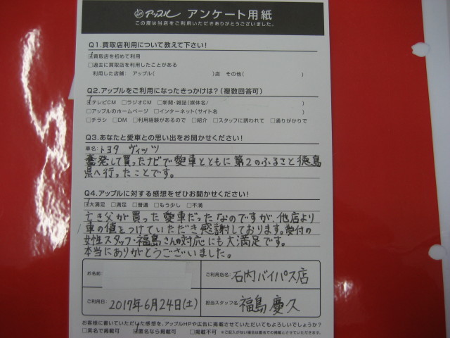 亡き父が買った愛車だったのですが、他店より車の値をつけていただき感謝しております。