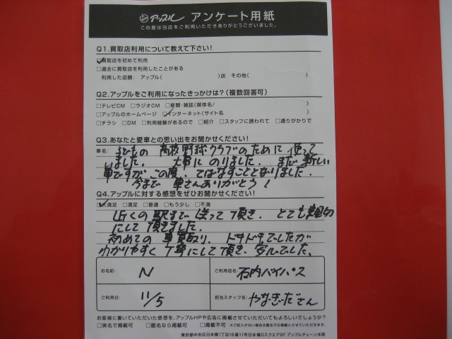 初めての車買取り、ドキドキでしたがわかりやすく丁寧にして頂き、安心でした。