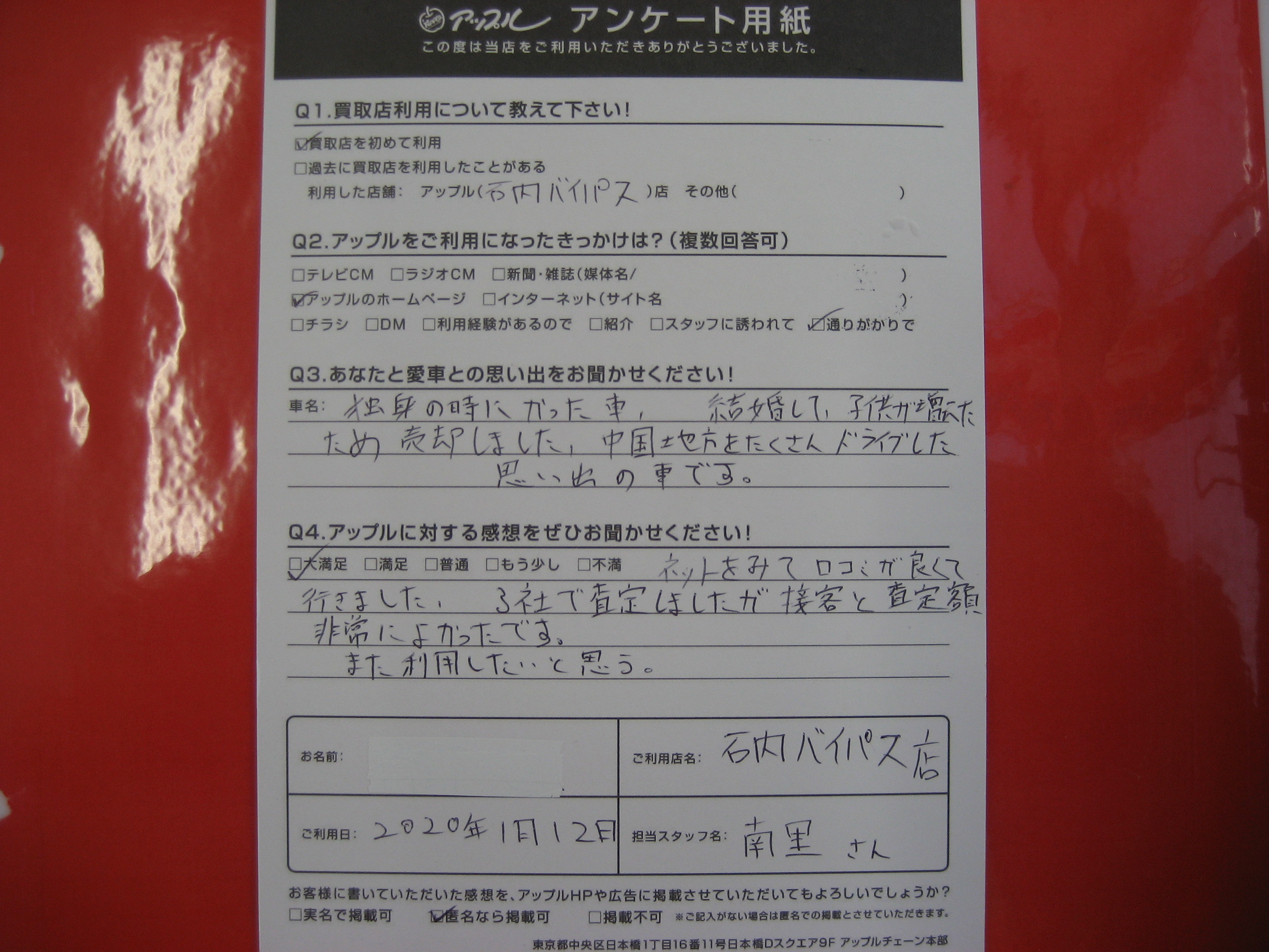 A.独身の時にかった車、結婚して、子供が増えたため売却しました。