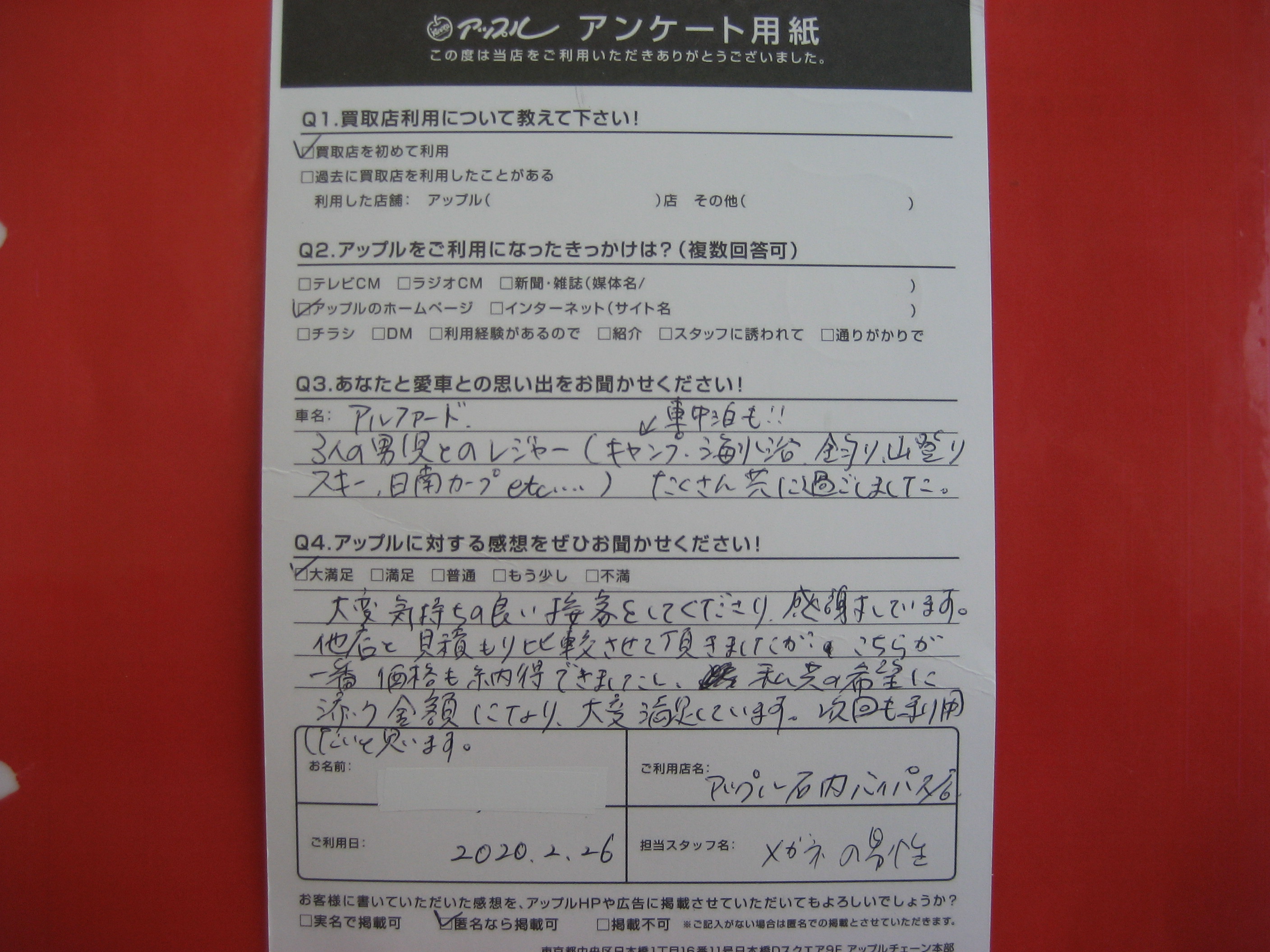 T.M様 車名:トヨタ アルファード(H27年1月~のHYBRID含む)
