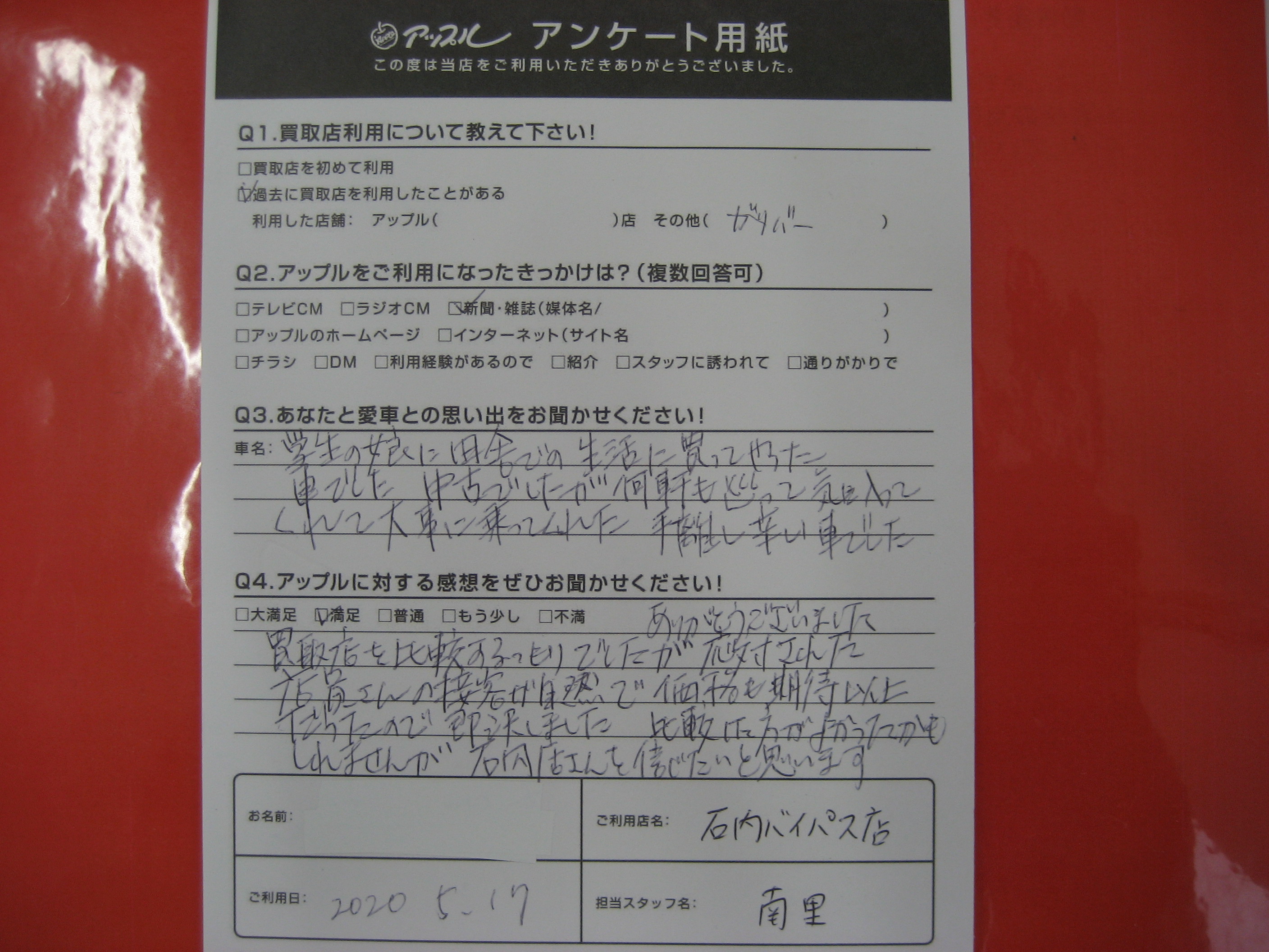 A.学生の娘に田舎での生活に買ってやった車でした