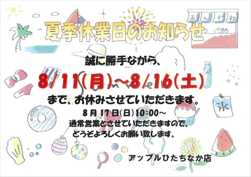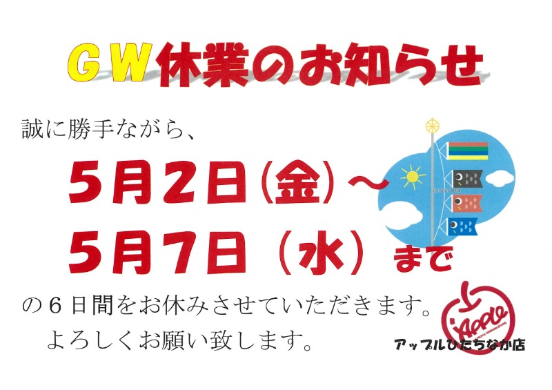 お車のご相談・ 査定だけでもOK! カンタン 入力 30秒 アップルがブランド買取始めました! お電話でも受付中! 受付時間 9:30~18:30 029-352-2311 お車のご相談・ 査定だけでもOK! カンタン 入力 30秒 アップルがブランド買取始めました! お電話でも受付中! 受付時間 9:30~18:30 029-352-2311 アップルがブランド買取始めました! お電話でも受付中! 受付時間 9:30~18:30 029-352-2311 店舗情報 在庫車 スタッフ紹介 ブログ お客様の声 キャンペーン 無料査定 click 最新記事一覧 月別アーカイブ 2026年04月(4)2026年03月(3)2026年02月(1)2026年01月(6)2025年12月(2)2025年11月(1)2025年10月(3)2025年09月(1)2025年08月(2)2025年07月(1)2025年06月(1)2025年05月(2)2025年04月(2)2025年03月(1)2025年01月(2)2024年12月(2)2024年11月(1)2024年10月(1)2024年08月(6)2024年07月(2)2024年06月(1)2024年05月(1)2024年04月(3)2024年02月(1)2024年01月(1)2023年12月(1)2023年11月(2)2023年10月(1)2023年09月(4)2023年08月(2)2023年07月(1)2023年06月(1)2023年05月(1)2023年04月(3)2023年03月(3)2023年01月(1)2022年12月(2)2022年11月(1)2022年10月(1)2022年09月(1)2022年08月(3)2022年05月(3)2022年04月(2)2022年02月(1)2022年01月(1)2021年12月(2)2021年11月(3)2021年10月(2)2021年09月(1)2021年07月(4)2021年06月(1)2021年05月(2)2021年04月(2)2021年02月(1)2021年01月(1)2020年12月(1)2020年10月(1)2020年08月(2)2020年06月(3)2020年05月(2)2020年04月(1)2020年03月(1)2020年02月(1)2020年01月(2)2019年12月(3)2019年11月(3)2019年10月(2)2019年09月(1)2019年08月(2)2019年07月(1)2019年06月(3)2019年05月(1)2019年04月(1)2019年03月(1)2019年02月(1)2019年01月(3)2018年12月(2)2018年11月(1)2018年10月(1)2018年08月(2)2018年06月(3)2018年04月(2)2018年03月(1)2018年02月(1)2018年01月(2)2017年12月(1)2017年11月(3)2017年10月(2)2017年08月(4)2017年07月(2)2017年06月(1)2017年05月(2)2017年04月(1)2017年03月(2)2017年02月(2)2017年01月(4)2016年12月(2)2016年11月(2)2016年10月(2)2016年09月(2)2016年08月(2)2016年07月(1)2016年06月(3)2016年04月(3)2016年03月(2)2016年02月(5)2016年01月(9) 21-30/213件中 [ つぶやき ] 2025/09/29(月) 17:36 ~10月も買取強化中~ いつも、アップルひたちなか店をご利用下さり、ありがとうございます☺9月もたくさんのお客様とのご縁があり、在庫車輌が足りません(;∀;)✨なので、10月も買取強化実施中ですので、ぜひアップルひたちなか店へ査定ご依頼下さい!(^^)!来店査定はもちろん、出張査定のご相談も可能ですので、お気軽にご… [ つぶやき ] 2025/08/19(火) 16:02 ~那珂市のだぼう~ こんにちは♪先日、姉妹店のアップル那珂中央店のすぐ近くにある、お蕎麦屋さんだぼうにスタッフ同士で行ってきました😋地元でも人気のお店なので、お昼時で並んでましたが、外には座るスペースもありますし、涼しげなめだかさんもいてお店の雰囲気も良かったです(^^♪車の中で待つこともできるようです!(^^… [ つぶやき ] 2025/08/05(火) 10:17 ~夏季休業日のお知らせ~ 🍎アップルひたちなか店🍎8/11~8/16まで夏季休業をいただきます🍉連休中のお問い合わせにつきましては、8/17(日)より順次ご対応させていただきますのでご了承下さいますようお願いいたしますm(__)m猛暑が続きますが、体調管理に気をつけて安全に夏を楽しみましょう🌞 [ 入庫情報 ] 2025/07/15(火) 16:03 ~おすすめ在庫車ございます~ 入庫したばかりの綺麗なおすすめの在庫車3台です\(^o^)/まずはトヨタヤリスクロスHVZ❣🍎令和5年🍎15,000kmディスプレイオーディオ♡ナビ♡シートヒーター♡BSM♡4WDそして日産ルークスハイウェイスターGターボ❣🍎令和4年🍎36,000km☆両側ハンズフリーオートスライドドア☆… [ つぶやき ] 2025/06/03(火) 10:53 ~6月も買取強化中(*^-^*)~ 6月も引き続き買取強化中です(*^-^*)ぜひ、皆様の大切なご愛車の買取査定等、アップルひたちなか店へご相談ください!(^^)!古いお車でもしっかり丁寧に査定させていただきます☺無料出張査定も可能です(^^♪中古車販売もご相談ください❣梅雨時期でジメジメすっきりしない空ですね🐸ぜひ、お待ちし… [ つぶやき ] 2025/05/24(土) 13:07 ~決算につき車輛不足中です(´;ω;`)~ 緊急です(;∀;)アップルひたちなか店決算につきお車のご契約を多数いただけた為、店舗の在庫車輛がまだまだ不足中です(;´・ω・)お車のお乗り換え、ご売却をお考えの方☆☆☆買取り強化中のアップルひたちなか店へぜひご依頼ください\(^o^)/無料出張査定も可能ですので、お気軽にお問い合わせ下さい… [ つぶやき ] 2025/05/11(日) 11:25 ~買取☆販売☆お任せください~ こんにちは(^^♪今年も自動車税納付の時期がやってきましたね(;∀;)GW連休もあっという間に終わり、アップルひたちなか店は通常営業しておりますので、お車の無料査定❣中古車販売❣ご来店をお待ちしております\(^o^)/ [ つぶやき ] 2025/04/27(日) 14:21 ~GW休業のお知らせ~ アップルひたちなか店🍎5/2(金)~5/7(水)までGW休業期間とさせていただきます☺連休中のお問い合わせにつきましては、5/8(木)より順次ご対応させていただきますので、ご理解の程宜しくお願い致しますm(__)mどうぞ、よろしくお願い致します。 [ 未分類 ] 2025/04/11(金) 16:49 ~桜満開のときに♪~ こんにちは♪桜が満開になった先日、スタッフ3人でプラっとお