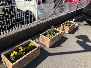 先日、冬の間おさぼりしていた花壇に春らしく、お花を植えました♪♪♪