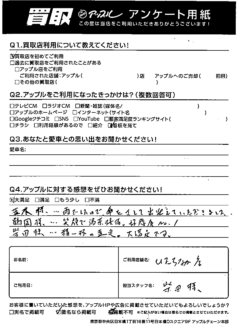 柴田様...精一杯の査定。大満足です。